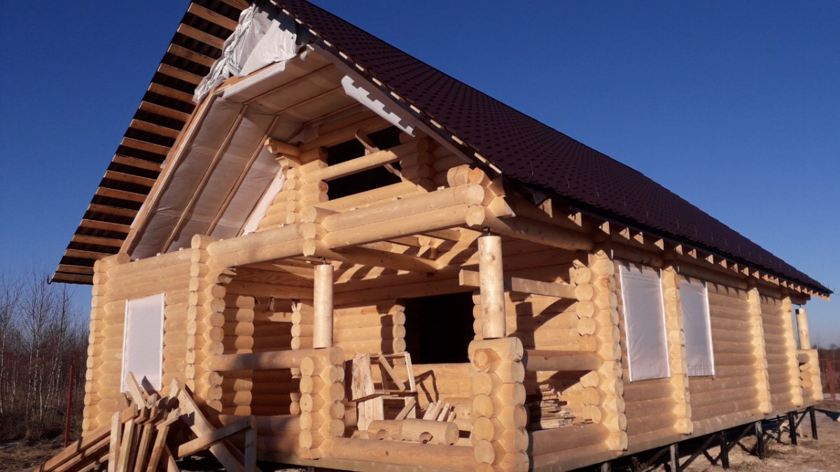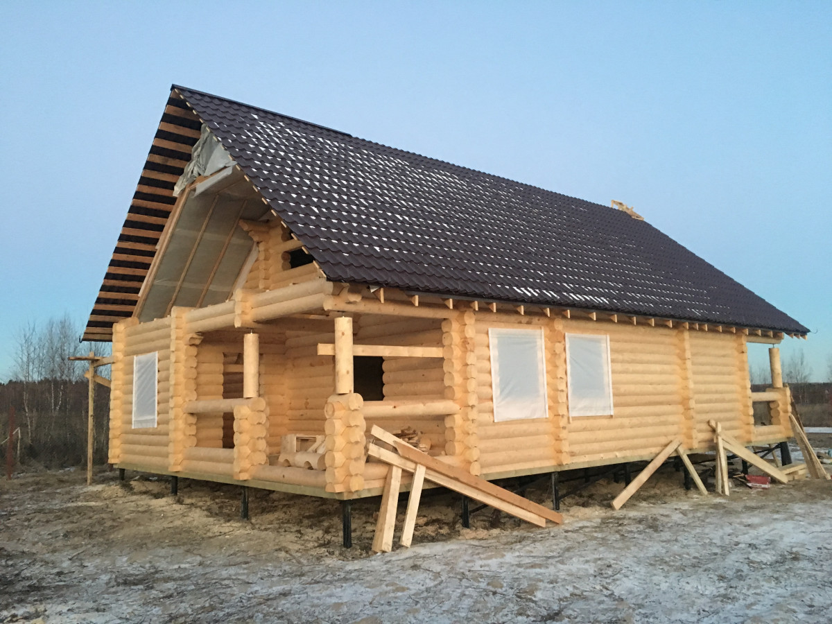 Здравствуйте. Мы с помощью компании ДревЭксперт построили этот прекрасный дом-баню, собираемся здесь жить.
